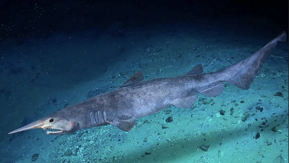 Le requin-lutin est une espèce de squale unique au monde, dont l’existence remonte à plus de 125 millions d’années. Ce prédateur des profondeurs se distingue par sa silhouette étrange : un museau allongé, une peau rosâtre et, surtout, une mâchoire protractile capable de se détacher de son visage pour harponner ses proies.